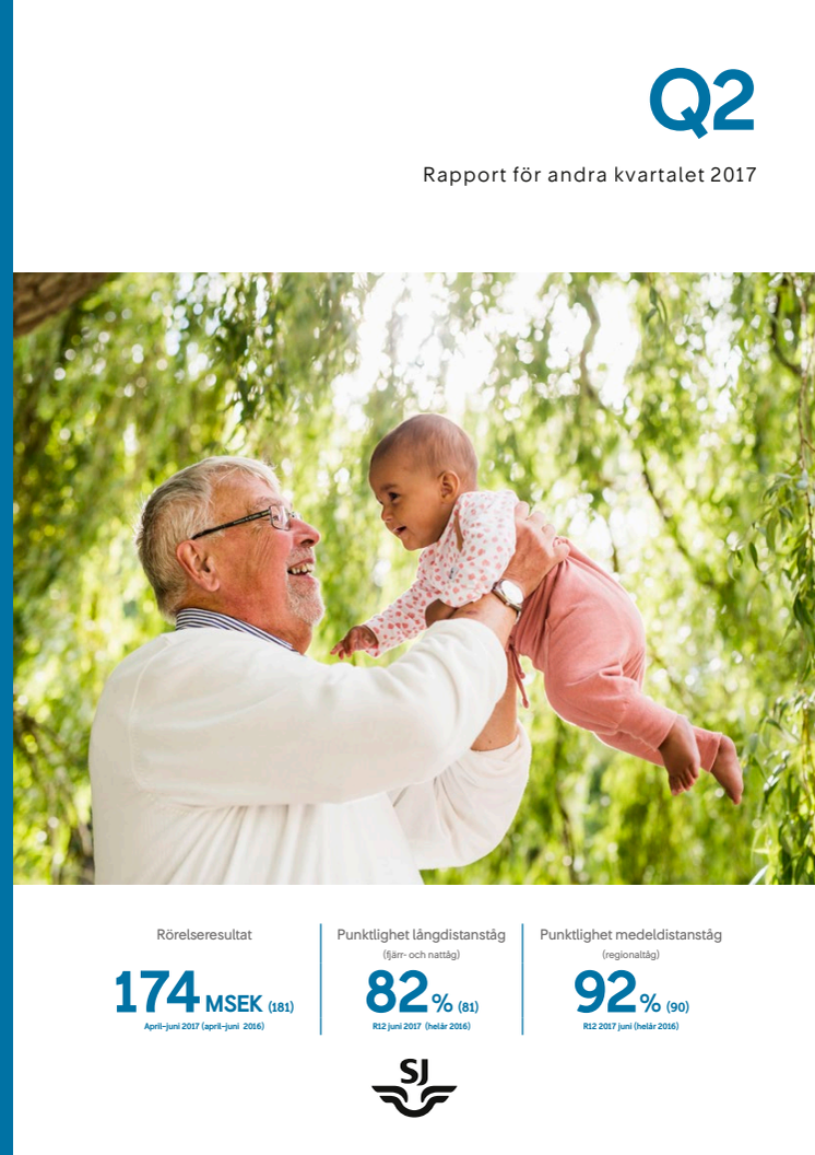 SJ har en fortsatt stabil lönsamhetsutveckling trots att årets andra kvartal präglades av stora trafikstörningar med förlorade intäkter och merkostnader som följd. Tack vare ökade intäkter från framför allt egentrafiken nådde SJ ett rörelseresultat på 174 MSEK (181) och en nettoomsättning som uppgick till 1 964 MSEK (2 333).