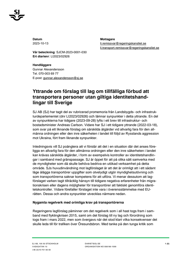 Remiss_Lagförslag om tillfälliga förbud att transportera personer utan giltiga ID-handlingar till Sverige_SJ yttrande.pdf